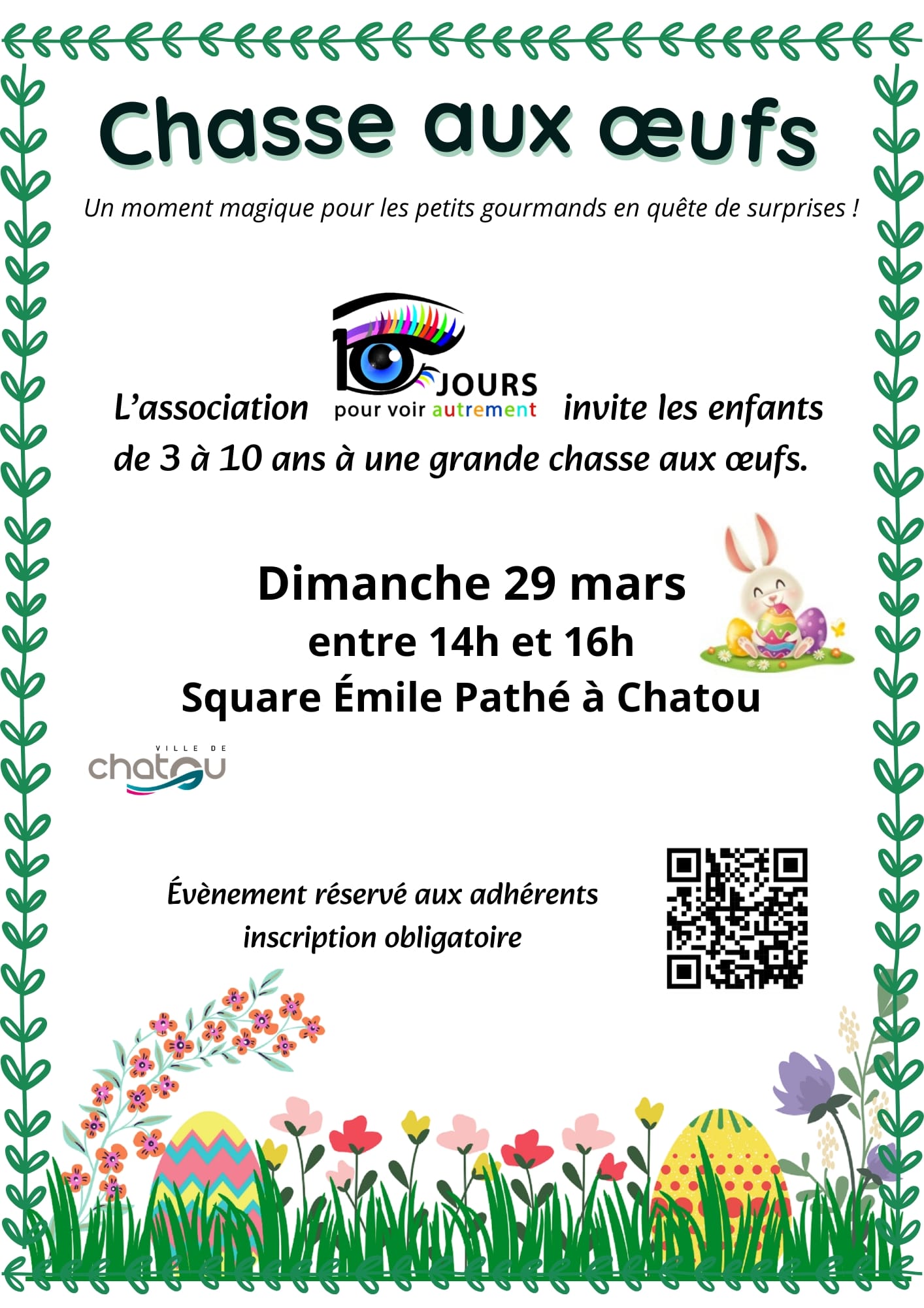 Tu as entre 3 et 10 ans, viens participer à la grande chasse aux oeufs dimanche 29 mars après-midi ! 🐣🥚